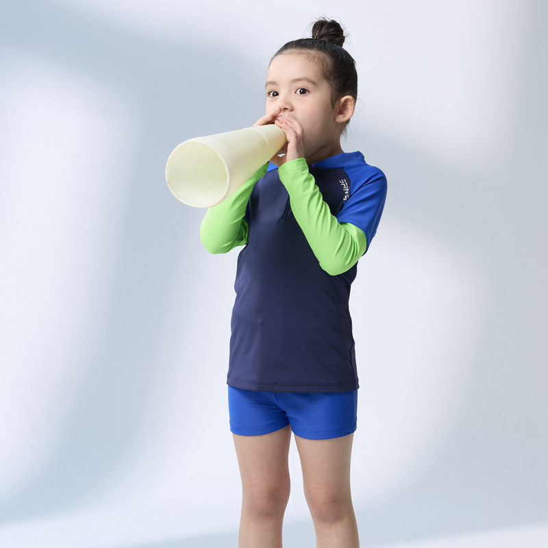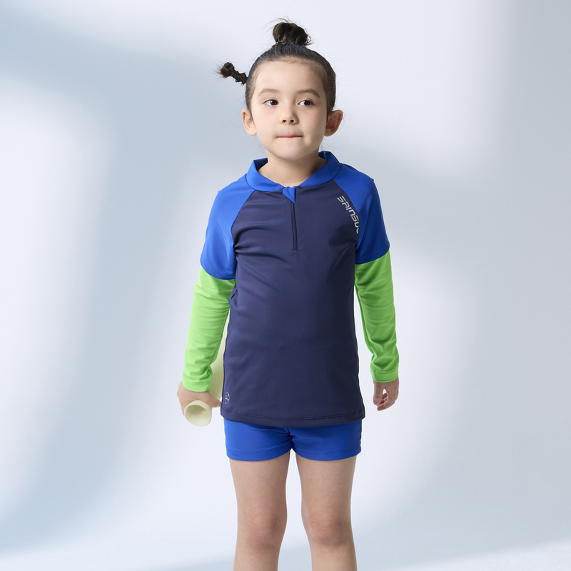 莫妮娜 台灣製 長袖抗UV二件式 泳裝 藍螢光 男女童皆適穿