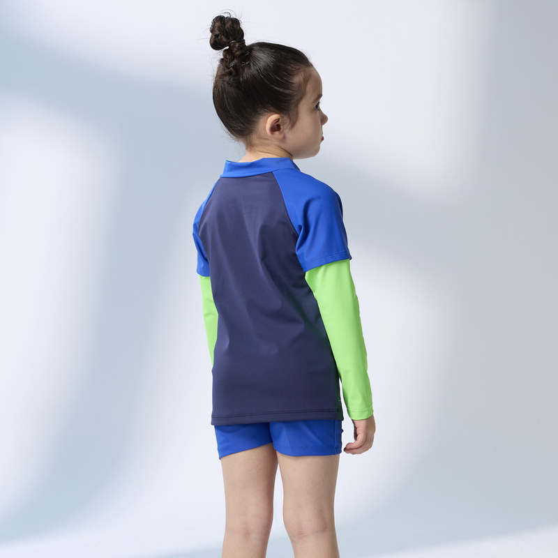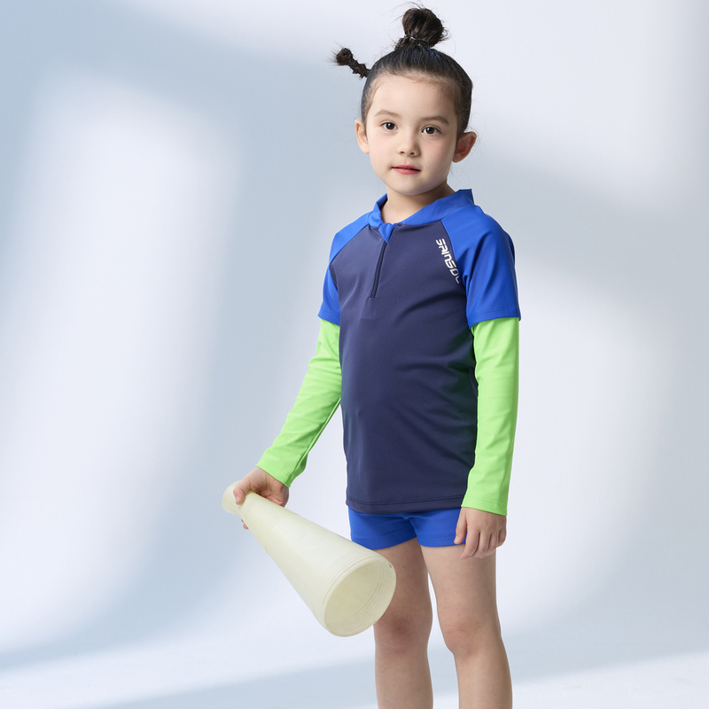 莫妮娜 台灣製 長袖抗UV二件式 泳裝 藍螢光 男女童皆適穿