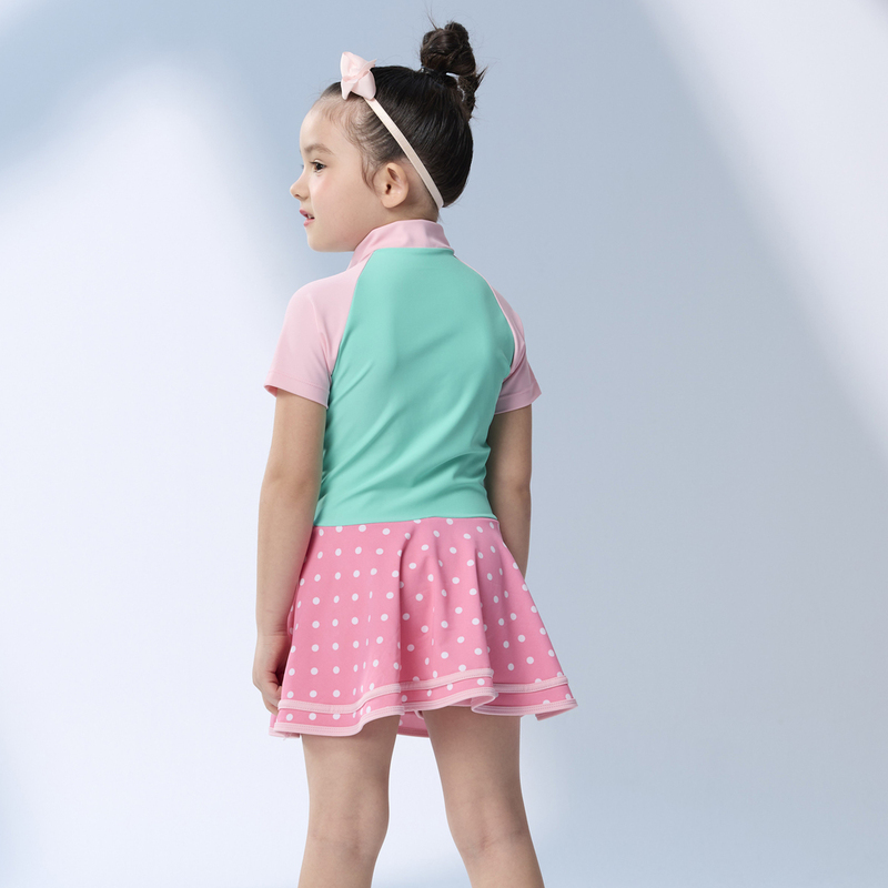 莫妮娜 台灣製 兒童粉綠短袖連身裙 泳裝