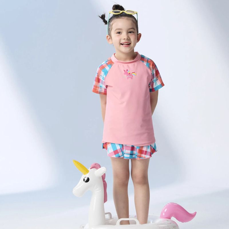 莫妮娜 台灣製 兒童格子短袖 二件式 泳裝