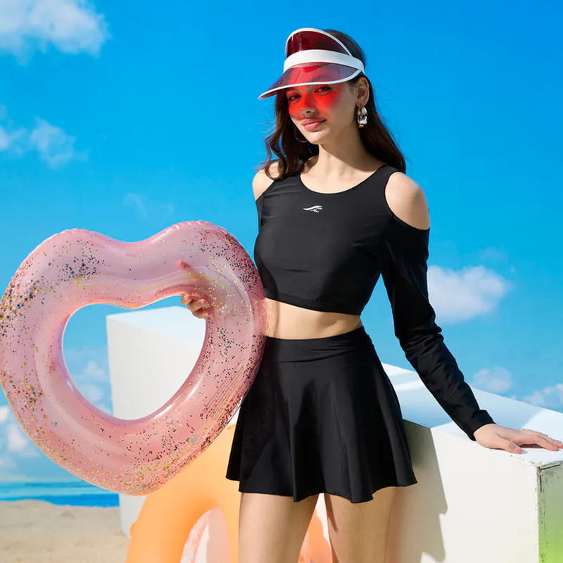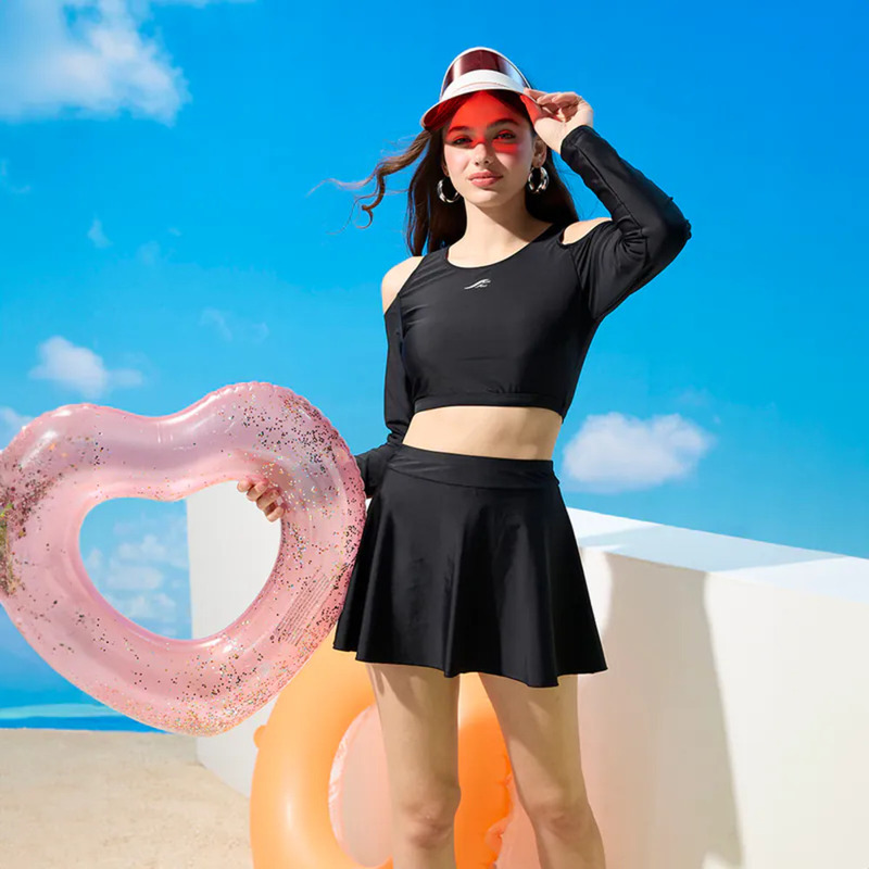 莫妮娜 台灣製 長袖防曬二件式 顯瘦A字裙 泳裝