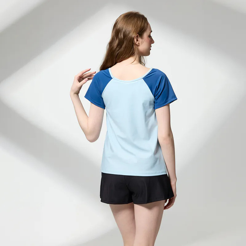 莫妮娜 台灣製 清爽藍調短袖二件式泳裝