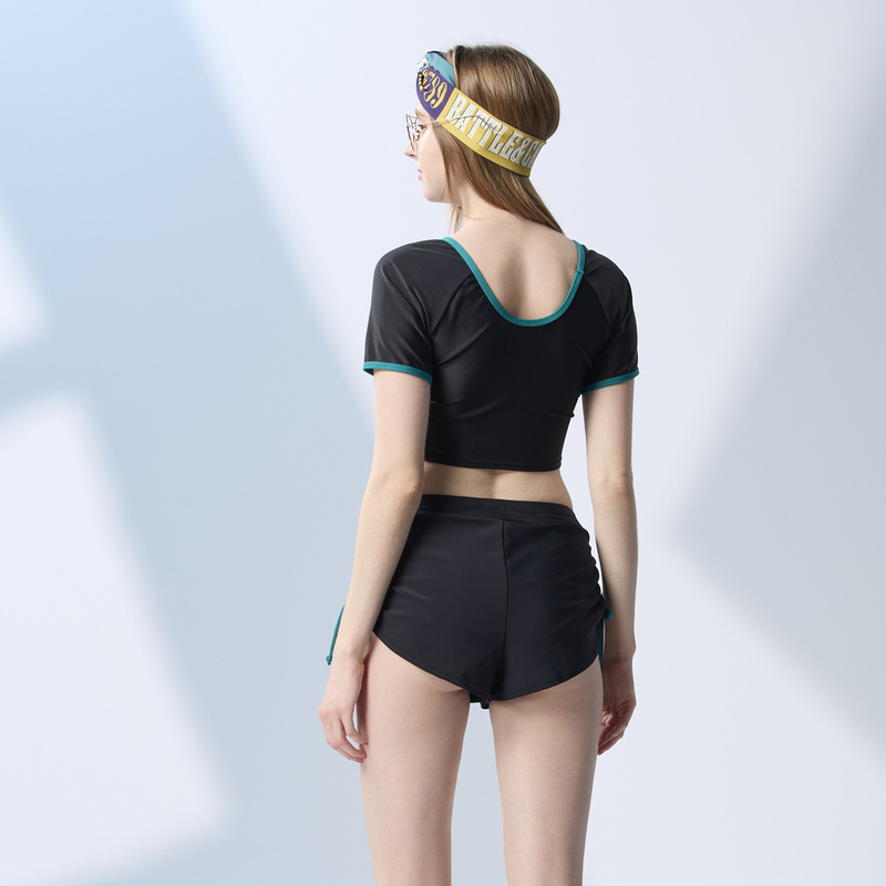 台灣製 少女墨綠修身短袖二件式 泳裝 限量發售
