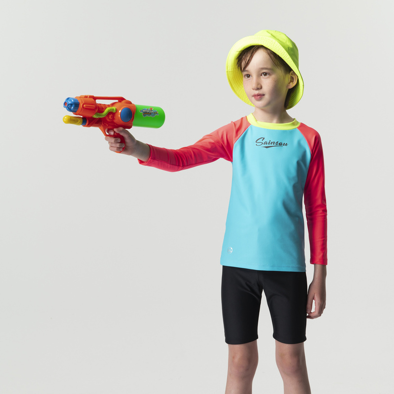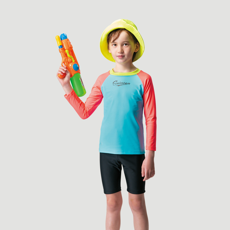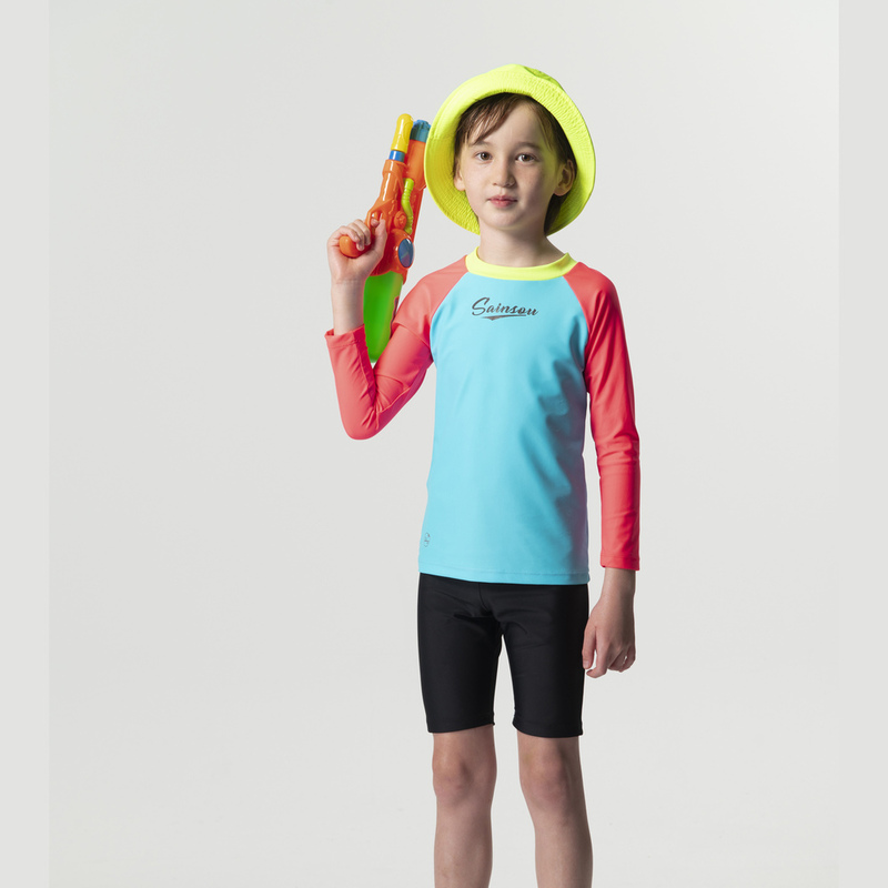 台灣製 長袖抗UV二件式 極光撞色泳裝 男女童皆適穿