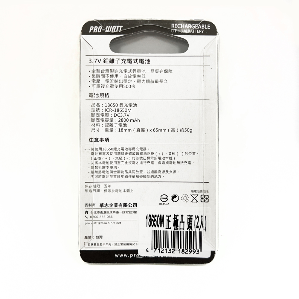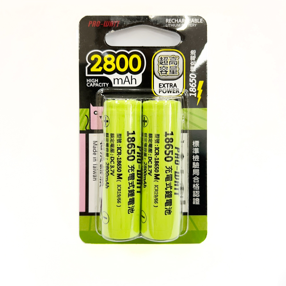 【華志PRO-WATT】2800mAh高容量18650高頭(二入) 充電式 鋰電池(台製)