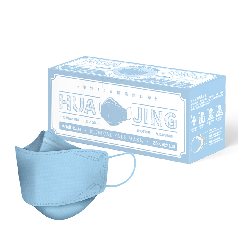 華淨4D醫療口罩-成人冰湖藍25入/盒