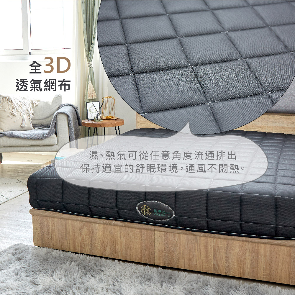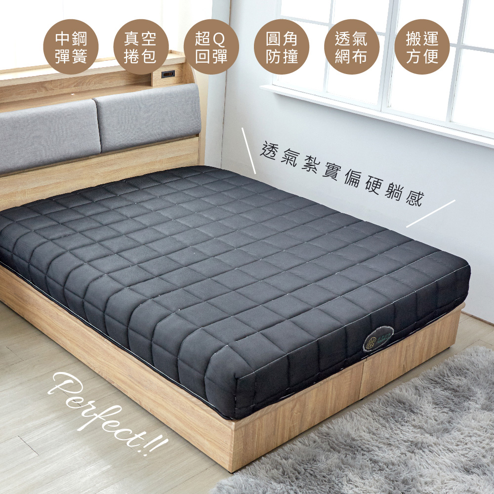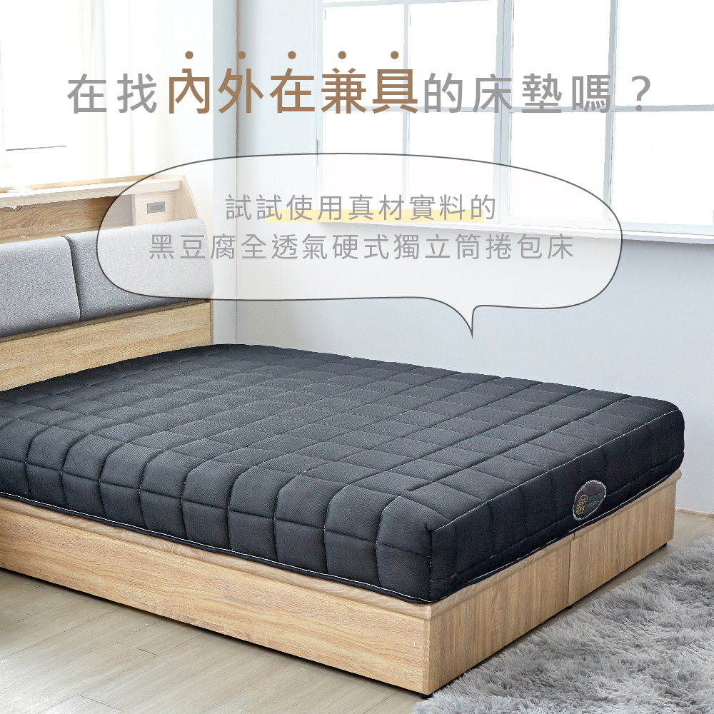 台灣製【藤原傢俬★捲包床】黑豆腐全透氣硬式獨立筒捲包床-偏硬