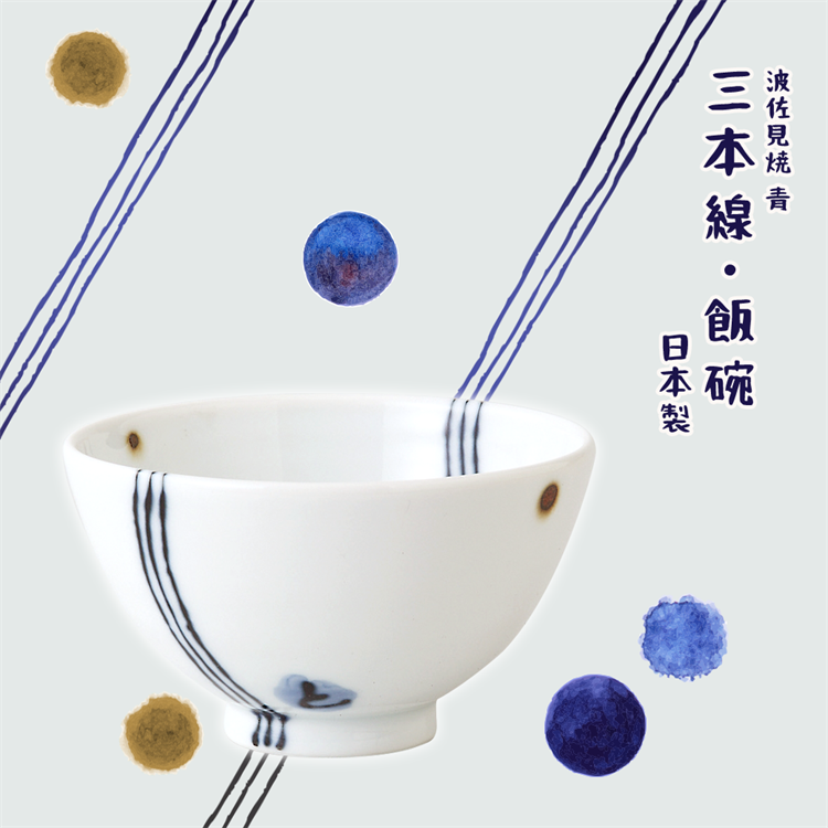 【毓秀堂】西海陶器 三本線 飯碗-青