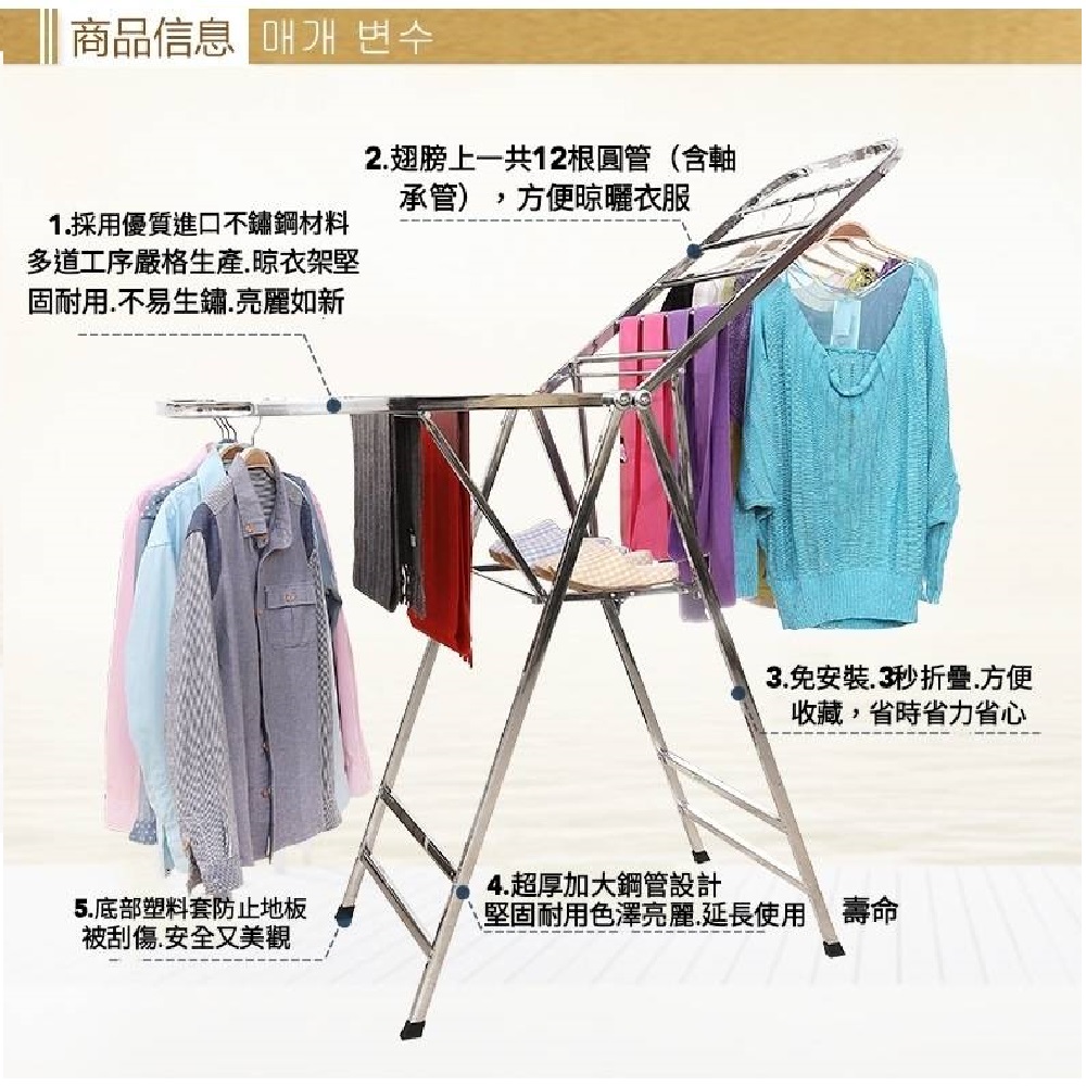 商品名稱:【全不銹鋼大翼形曬衣架】折疊晾衣架 落地曬衣架免安裝曬被架 摺疊吊衣架 不鏽鋼衣架