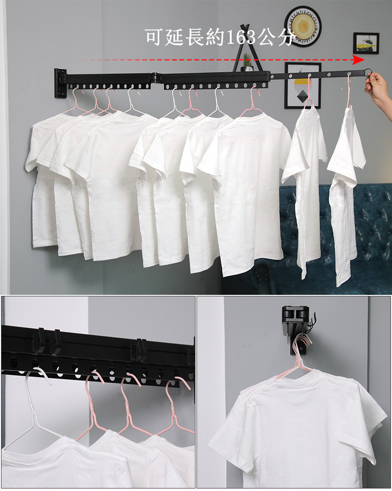 商品名稱:折疊晾衣架陽臺壁掛式涼被子伸縮衣架隱形晾衣桿