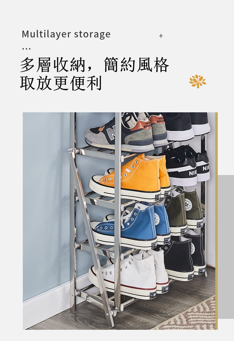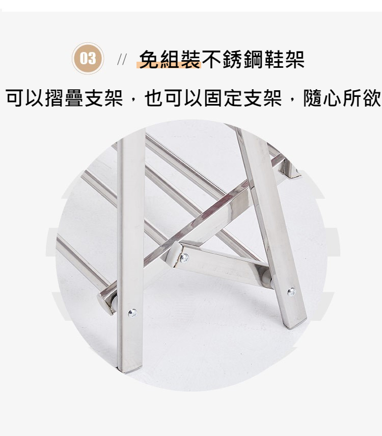 商品名稱:免安裝不鏽鋼折疊四層鞋架