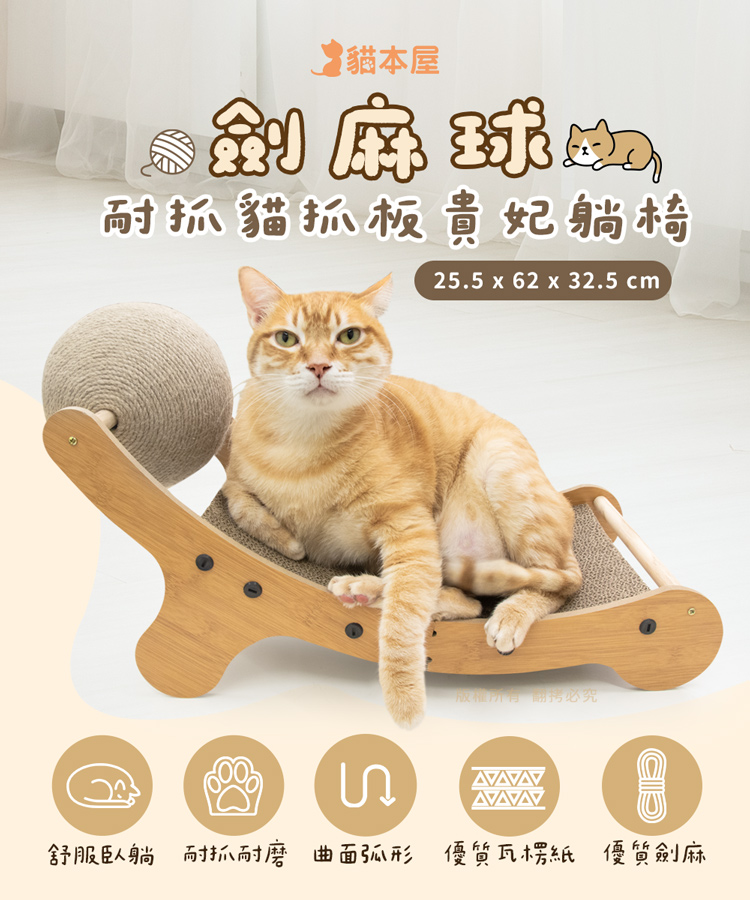 【貓本屋】劍麻球耐抓貓抓板貴妃躺椅-OO-P-SB26