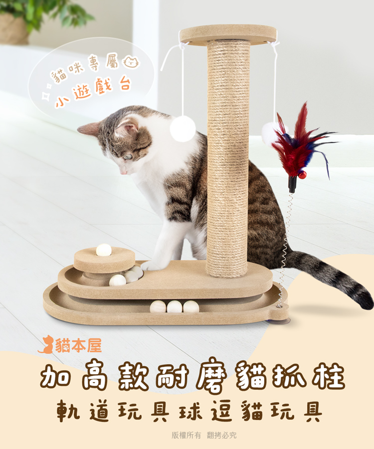 【貓本屋】加高款耐磨貓抓柱 軌道玩具球逗貓玩具-OO-P-SB29