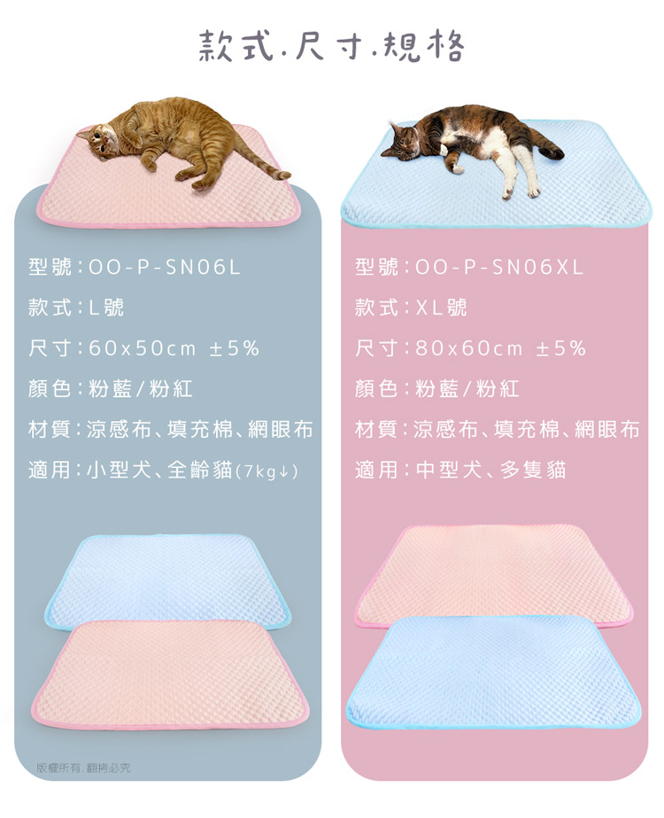 貓本屋 冰豆豆涼感寵物墊-XL號-OO-P-SN06XL-B-粉藍