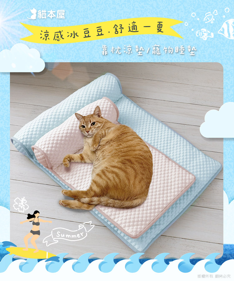 貓本屋 冰豆豆涼感 靠枕寵物睡墊(XL號/80x60cm)★貓狗適用★ --溫和迅速降溫,涼爽舒適,告別黏膩!-- 炎炎夏日,擔心冷氣費貴、更怕獨自留在家中的毛孩們太熱!尤其毛小孩的體溫又比人略高,除了通風的環境、提供充足的水份之外還能提供什麼避暑良方呢? 【冰豆豆涼感寵物墊】,採用冰豆豆涼感冰絲面料,皮膚接觸這種面料,會感到冰涼滑順,夏天不再擔心毛小孩太熱,不用吹冷氣也可以涼涼的!絕對是今年夏天的不二選擇! 圓弧靠枕內部填充高回彈的PP棉,如雲朵般蓬鬆柔軟,舒爽靠著睡可直接放置於寵物窩、籠子、地板、沙發上…等,趕快使用降溫墊,讓毛小孩擁有一個涼爽的休憩環境吧! ※請避免使用尖銳物割刺、或是寵物啃咬,以免造成破損。※若沾染髒污時,請立即使用濕布擦拭,避免長時間滲透!※若於溫度35℃以上的環境使用,可搭配電扇或空調,可提高使用效果。 注意事項: .本商品為接觸型商品,為避免傳染性疾病(如:跳蚤/壁虱/疥癬…等) 一經開封或試用過,恕不受理更換事宜。.本產品僅供寵物使用,請勿做其他用途。.若於溫度35℃以上的環境使用,可搭配電扇或空調,可提高使用效果。.收納存放時,請放置於陰涼乾燥處,請避免靠近火源/高溫/陽光直射。.欲清理時,可直接水洗,並搭配中性潔劑,清洗完畢時直接陰乾。.請避免使用尖銳物割刺、或是寵物啃咬,以免造成布面破損。.商品圖檔顏色因電腦螢幕設定差異會略有不同,以實際商品顏色為準。.購買前仔細詳閱商品規格尺寸,慎重購買,以免造成日後買賣糾紛。.所有的規格與重量皆採手工測量,誤差±5%屬正常範圍。 轉載敬告: 鈞嵐(立嵐)之商品圖文、影片或商標等,皆屬鈞嵐(立嵐)版權所有, 若未經同意即任意轉載刊登者,我司將進行相關智慧財產著作權與 商標權及商業法的追訴權利。 商品規格: .型 號:OO-P-SN07XL.品 名:貓本屋 冰豆豆涼感 靠枕寵物睡墊(XL號).款 式:粉藍/粉紅.尺 寸:約 80 x 60 x 1.8 cm / 靠枕厚度 11 cm.重 量:約 674.3 g.材 質:涼感布、PP棉、防滑顆粒.包裝方式:袋裝.包裝內含:冰豆豆涼感寵物墊 x1.商品保固:僅限新品瑕疵更可換商品.產 地:中國大陸