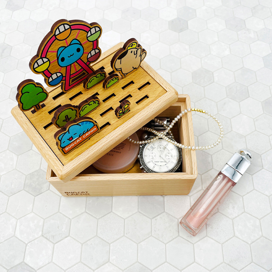*顏色因電腦螢幕解析度的不同,會與實體商品顏色稍有落差,請以實體商品顏色為主*要求完美者請勿下單*包裝盒未提供保固及退換貨服務咖波木質百寶盒精緻上市,精緻木盒可置放心愛飾品.珍藏小物特製咖波樂園木頭造型立牌,上蓋獨特孔洞設計可隨心情喜好擺放出喜愛的咖波氛圍,是療癒肉迷身心聖物木盒尺寸(含蓋):約12*8*6cm(+-5%)