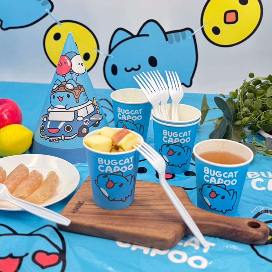 *顏色因電腦螢幕解析度的不同,會與實體商品顏色稍有落差,請以實體商品顏色為主*要求完美者請勿下單*包裝盒未提供保固及退換貨服務高質感派對佈置用品,讓鍾愛的咖波佈置一套搞定,輕鬆打造專屬的咖波歡樂氛圍內附派對帽.桌巾.掛旗.杯子.叉子(此為一次性商品),就讓歡樂的咖波陪你一起辦party內容物:派對帽*1.桌巾*1.掛旗*1.紙杯*5.叉子*5.盤子*5