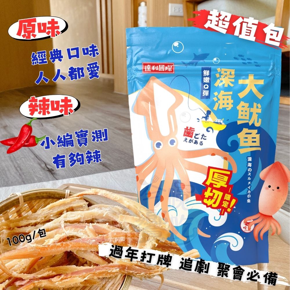 冬季年貨超夯 超人氣團購熱銷 鮮得就像現撈一樣 深海大魷魚100g/袋 (原味/辣味) 口味任選 [5包免運組