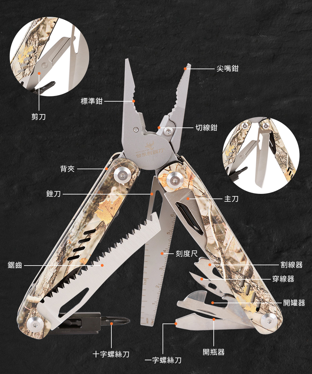【金永利鋼刀】420不鏽鋼 13合一 多功能老虎鉗 摺疊瑞士刀 露營隨身工具組