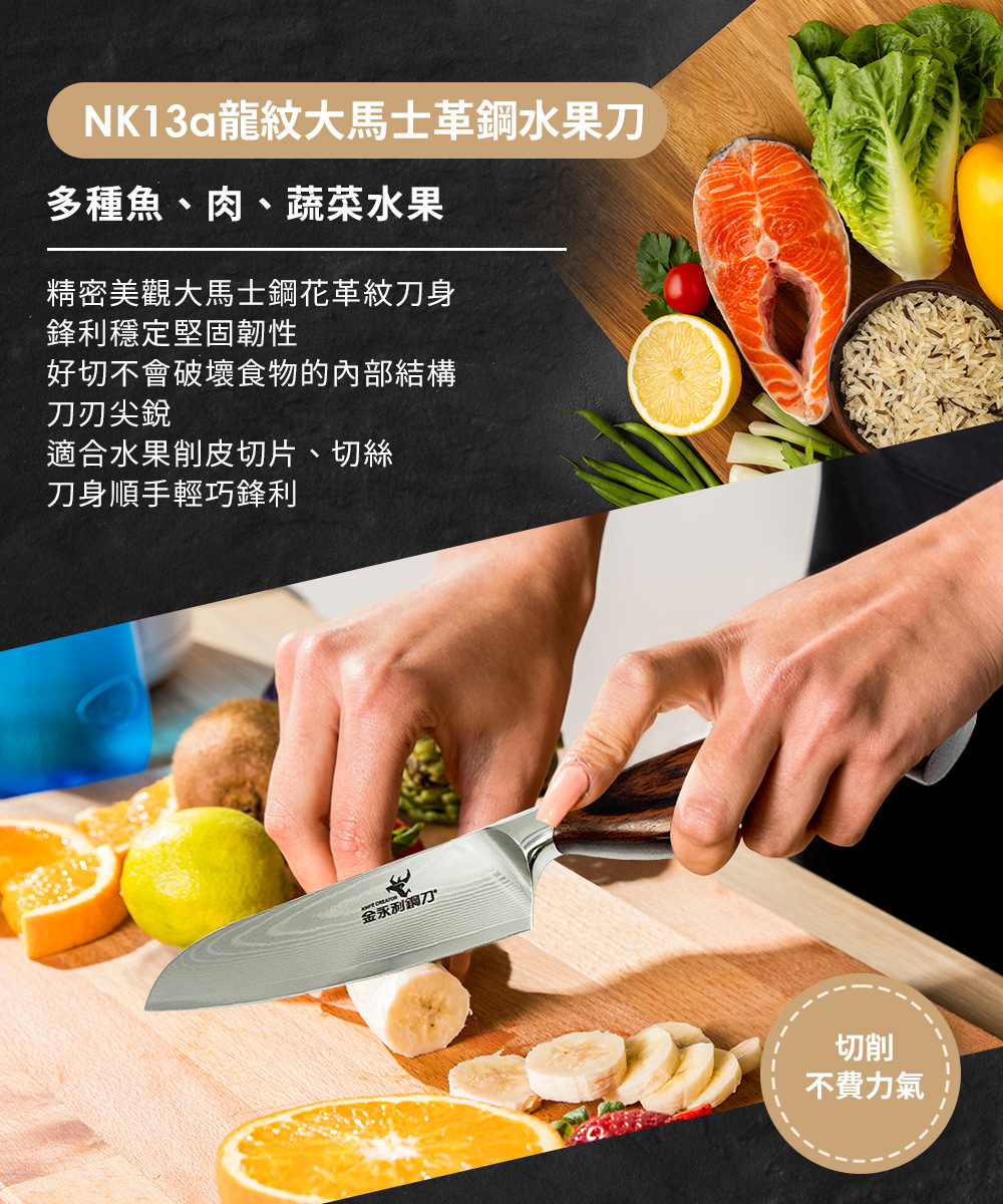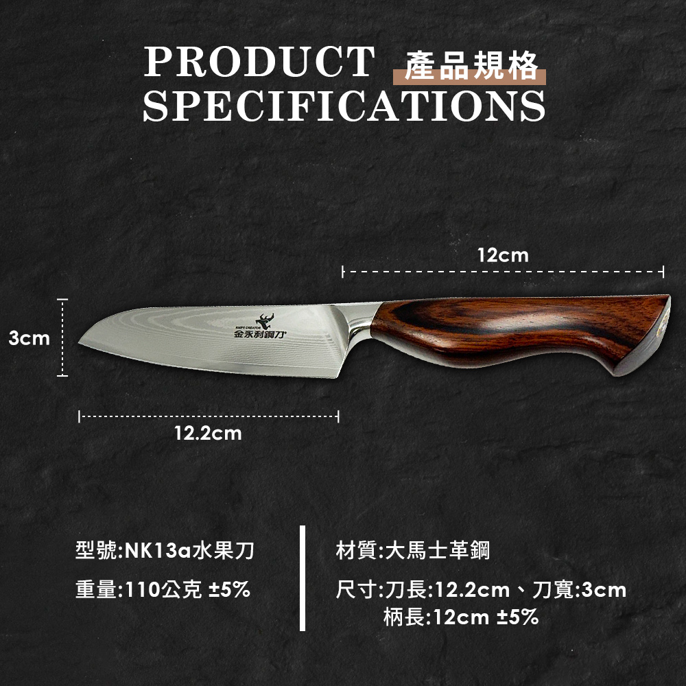 【金永利鋼刀】NK13a龍紋大馬士革鋼 水果刀12cm (送鋅合金刨刀)