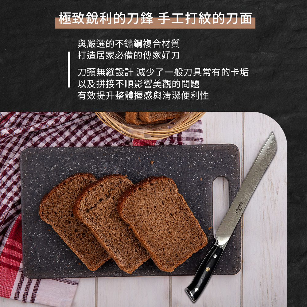 【金永利鋼刀】BN-01龍紋大馬士革鋼 麵包刀23cm (送鋅合金刨刀)