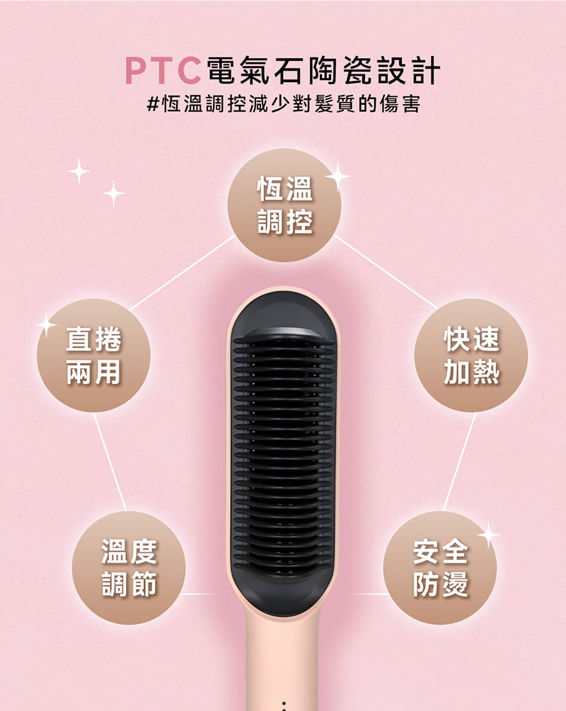 {誠貫}K.SKIN 國際電壓溫控直髮梳(櫻花粉)KD380A