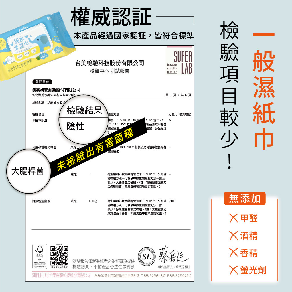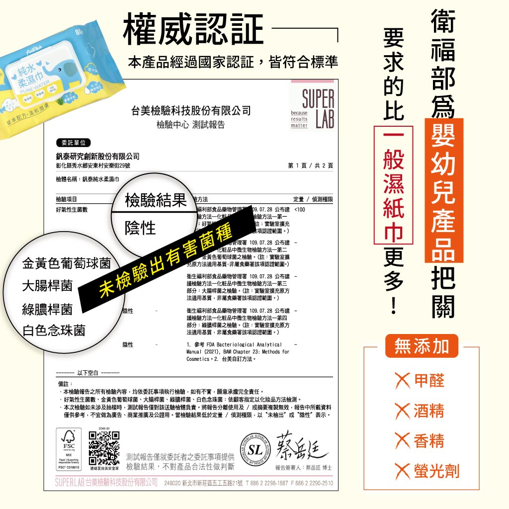 經權威檢驗機構,認證無有害菌種、無甲醛、無螢光劑