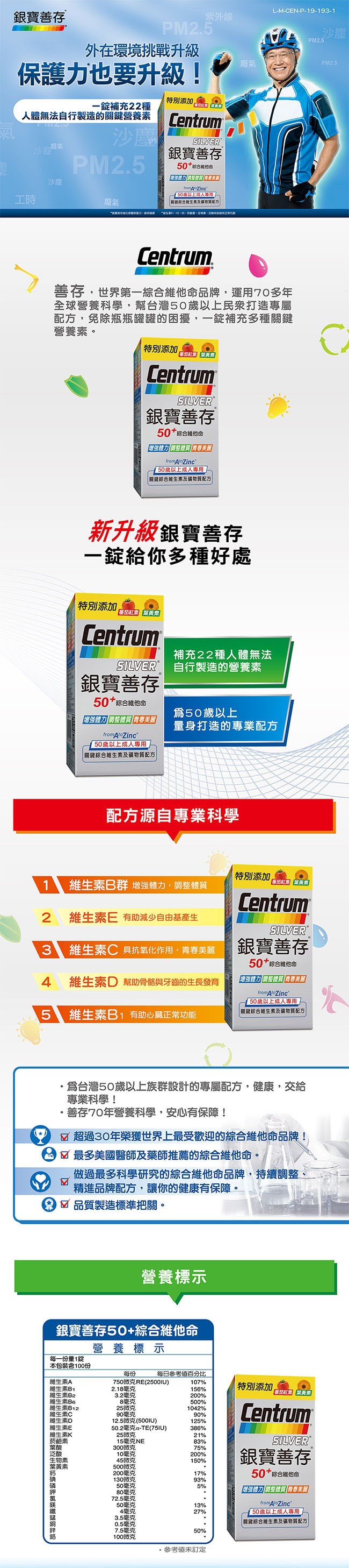 銀寶善存50+綜合維他命添加葉黃素、蕃茄紅素及B群提供多種健康好處※ 製造日期與有效期限,商品成分與適用注意事項皆標示於包裝或產品中※ 本產品網頁因拍攝關係,圖檔略有差異,實際以廠商出貨為主※ 本產品圖片.文案若有變動差異,敬請參照實際到貨商品為準