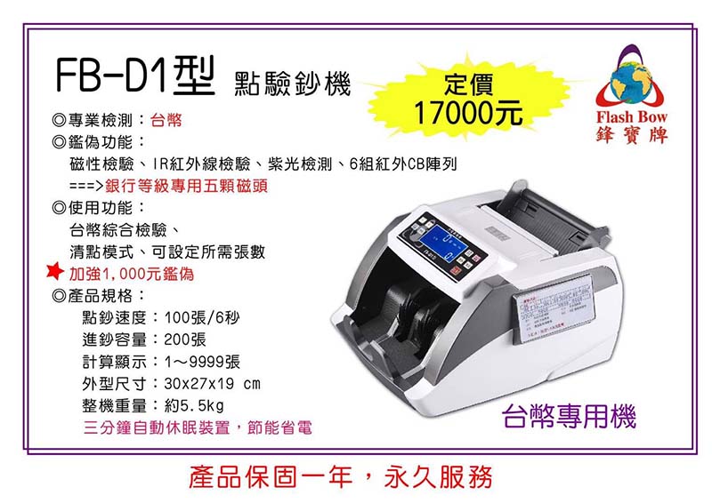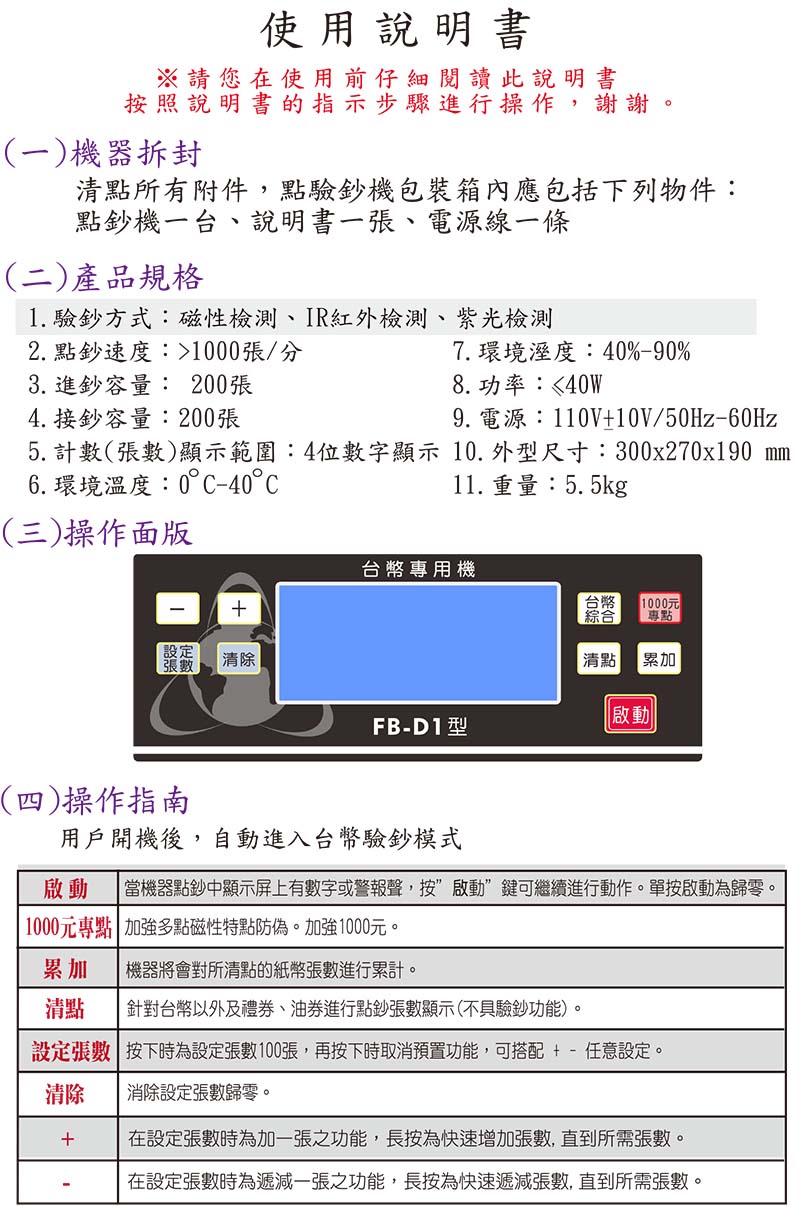 鋒寶牌 商業 專用機 點鈔機 驗鈔機 / 台 FB-D1 (台幣)