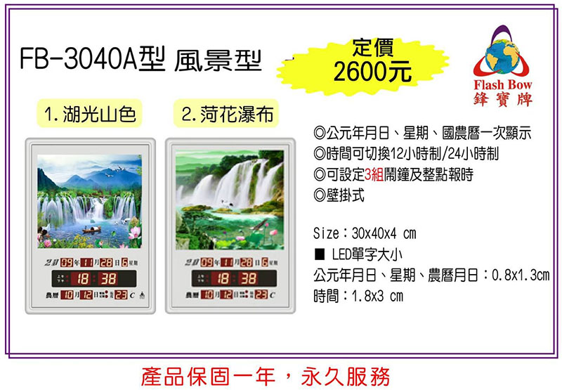 鋒寶牌 壁掛式 電子日曆 數位日曆 萬年曆 風景型 30X40X4cm / 台 FB-3040A