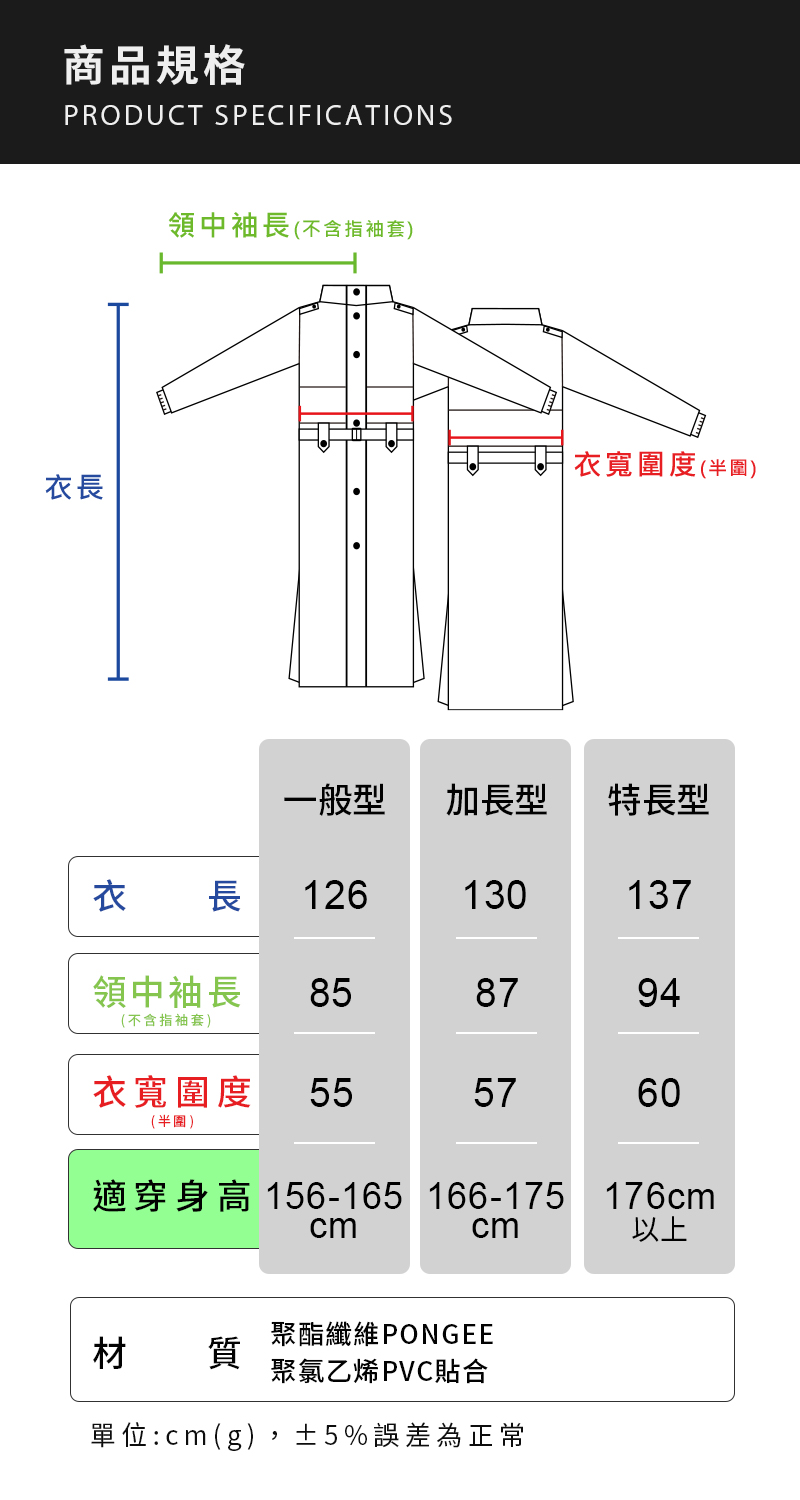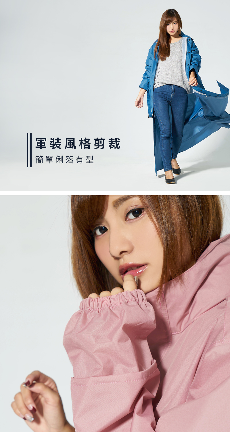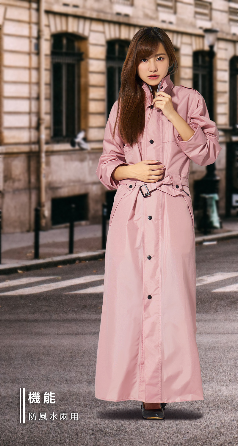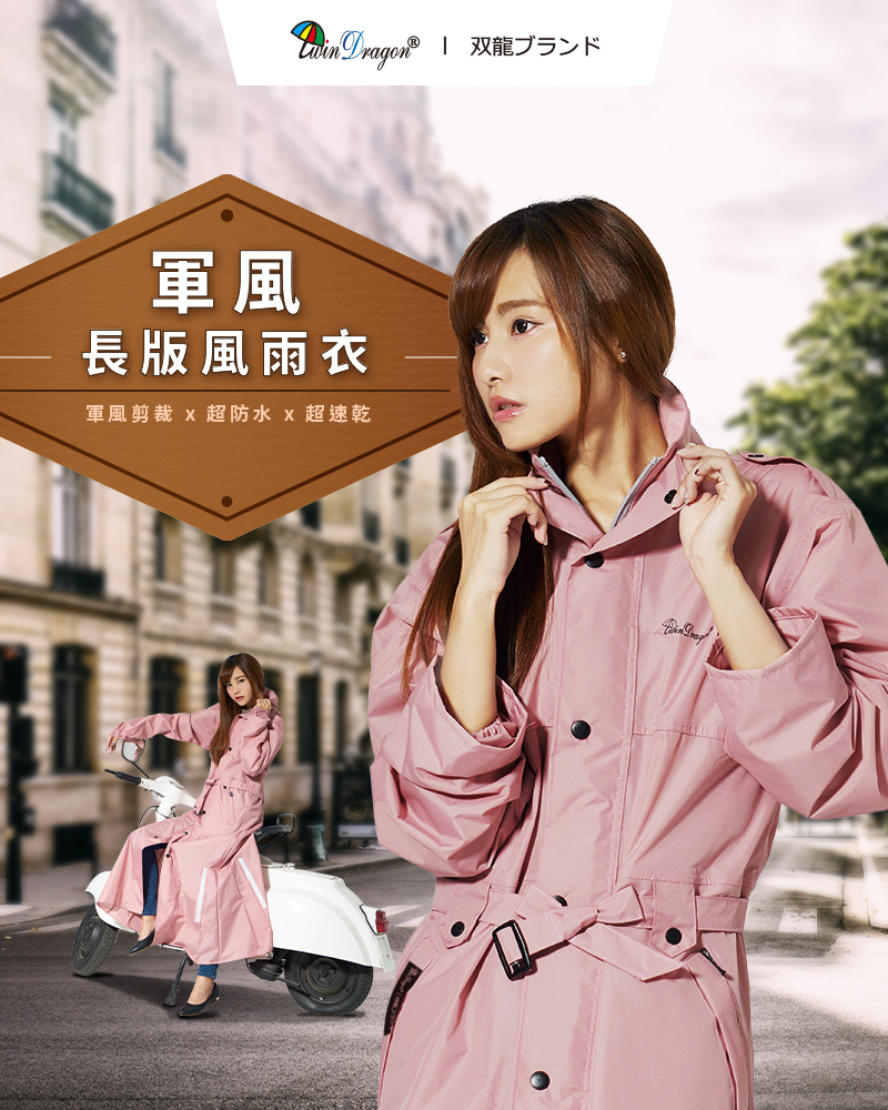 [雙龍]軍風長版風雨衣_防水風衣連身前開雨衣EU4418 珊瑚紅一般型