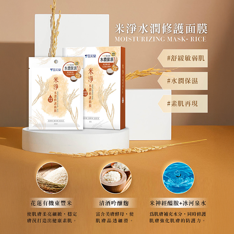 雪芙蘭米淨水潤修護面膜5入