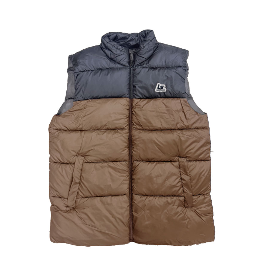 輕絨拼色保暖背心男款-黑棕M