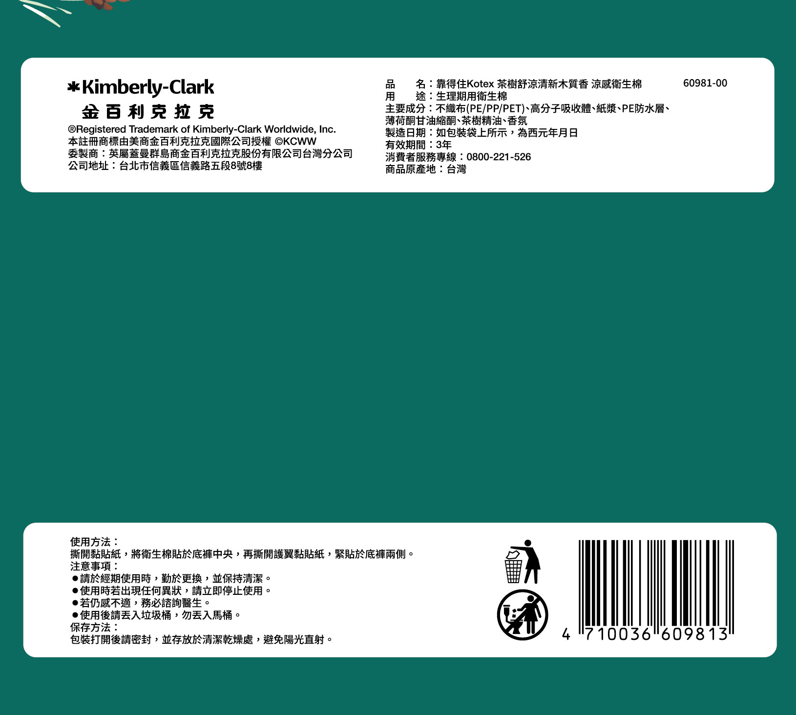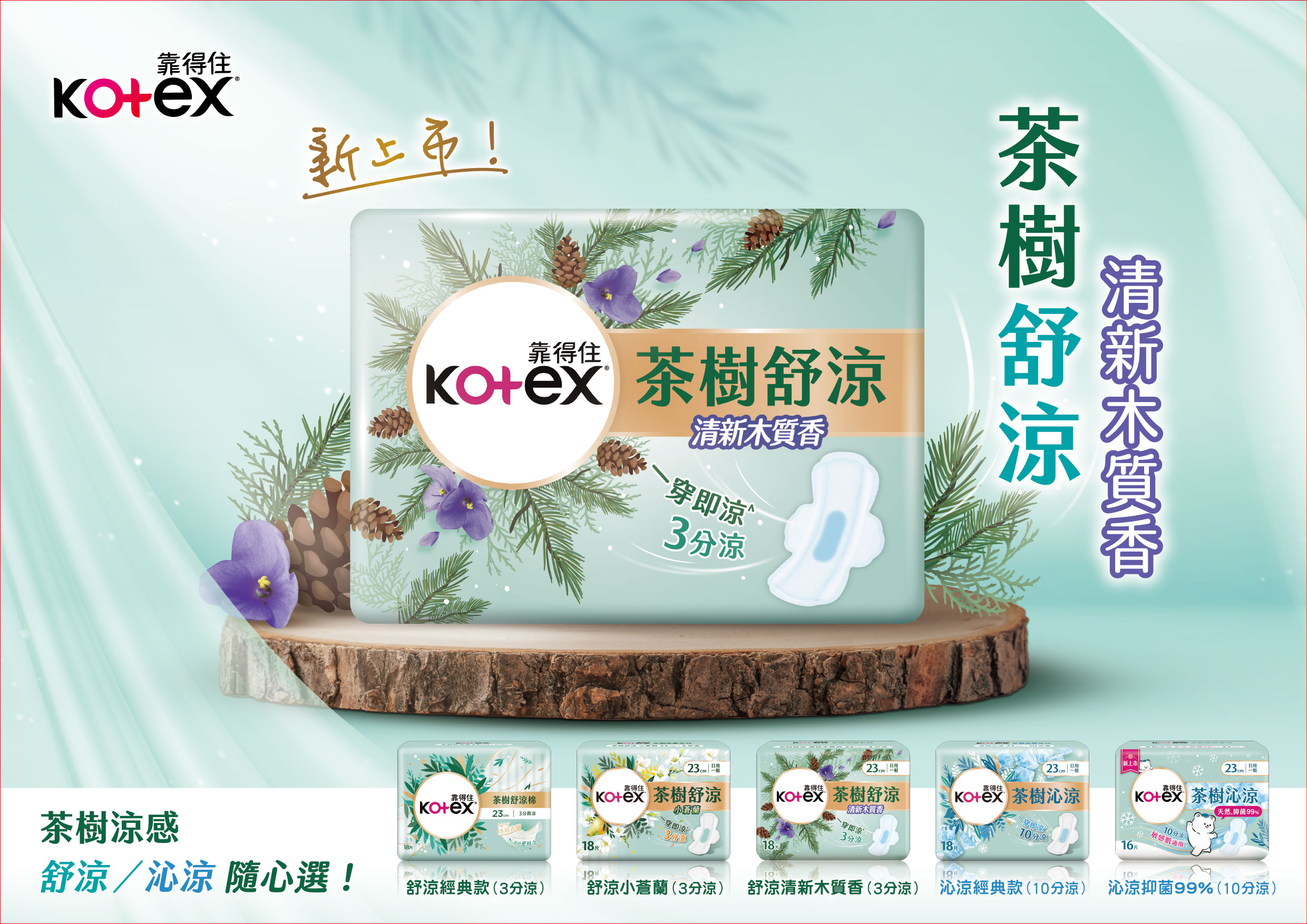 靠得住茶樹舒涼棉木質香28cm16片