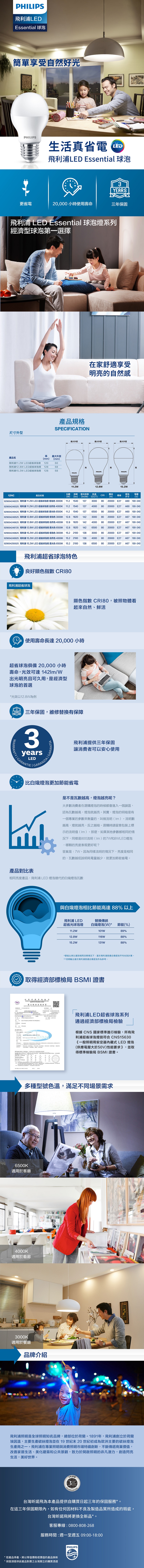飛利浦12.8W Essential球泡-晝光色