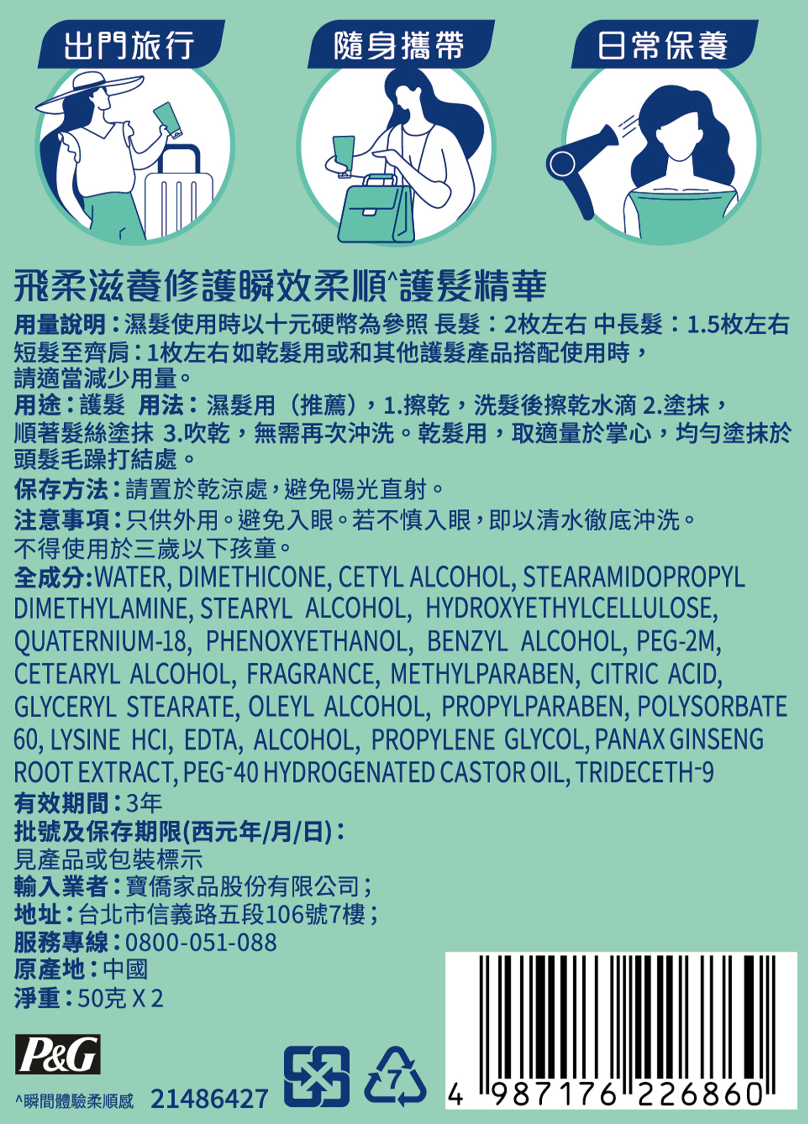 飛柔滋養修護瞬效柔順護髮精華隨身旅行裝