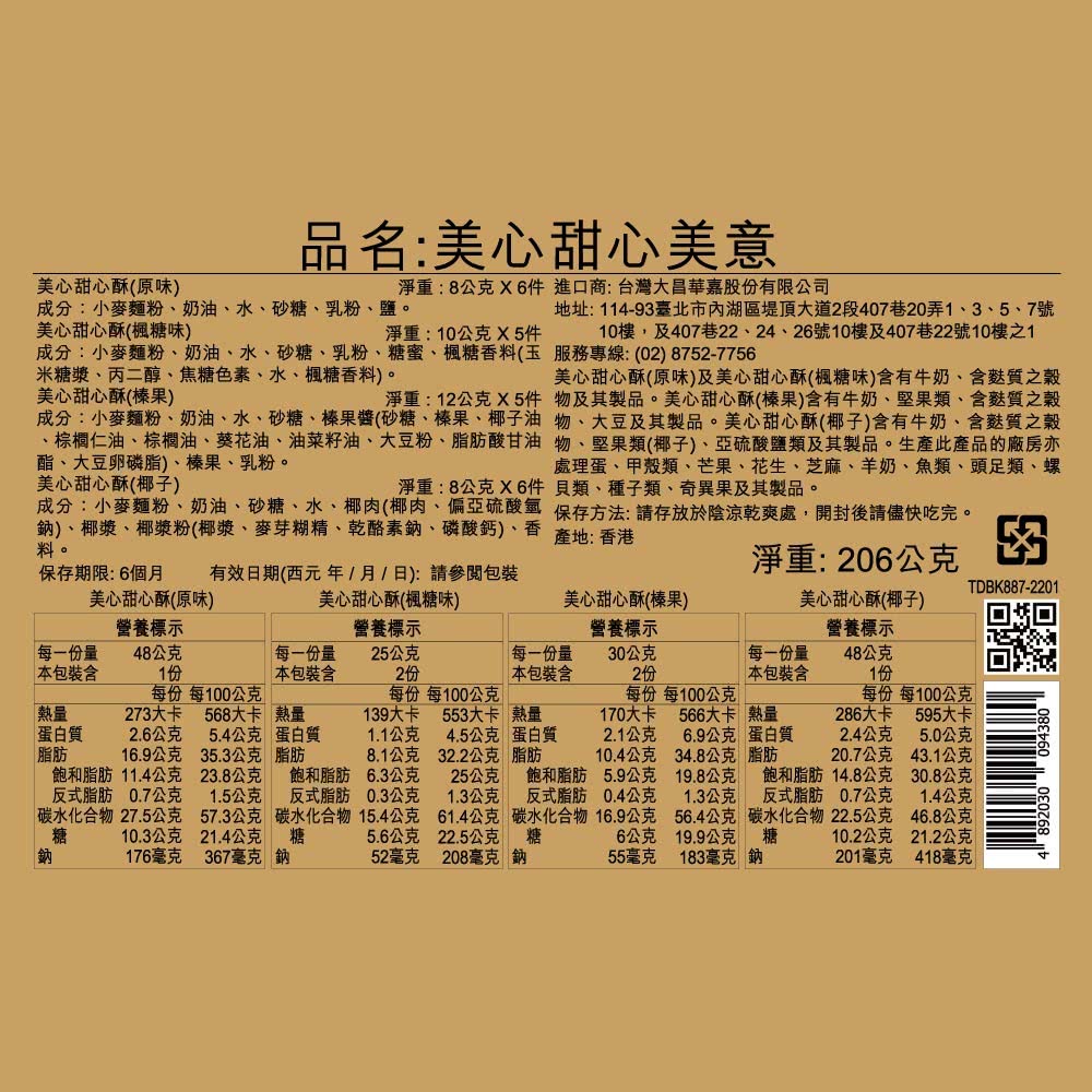 ◎品牌:香港美心 ◎規格: 230g克 x 1 x 1Bag包