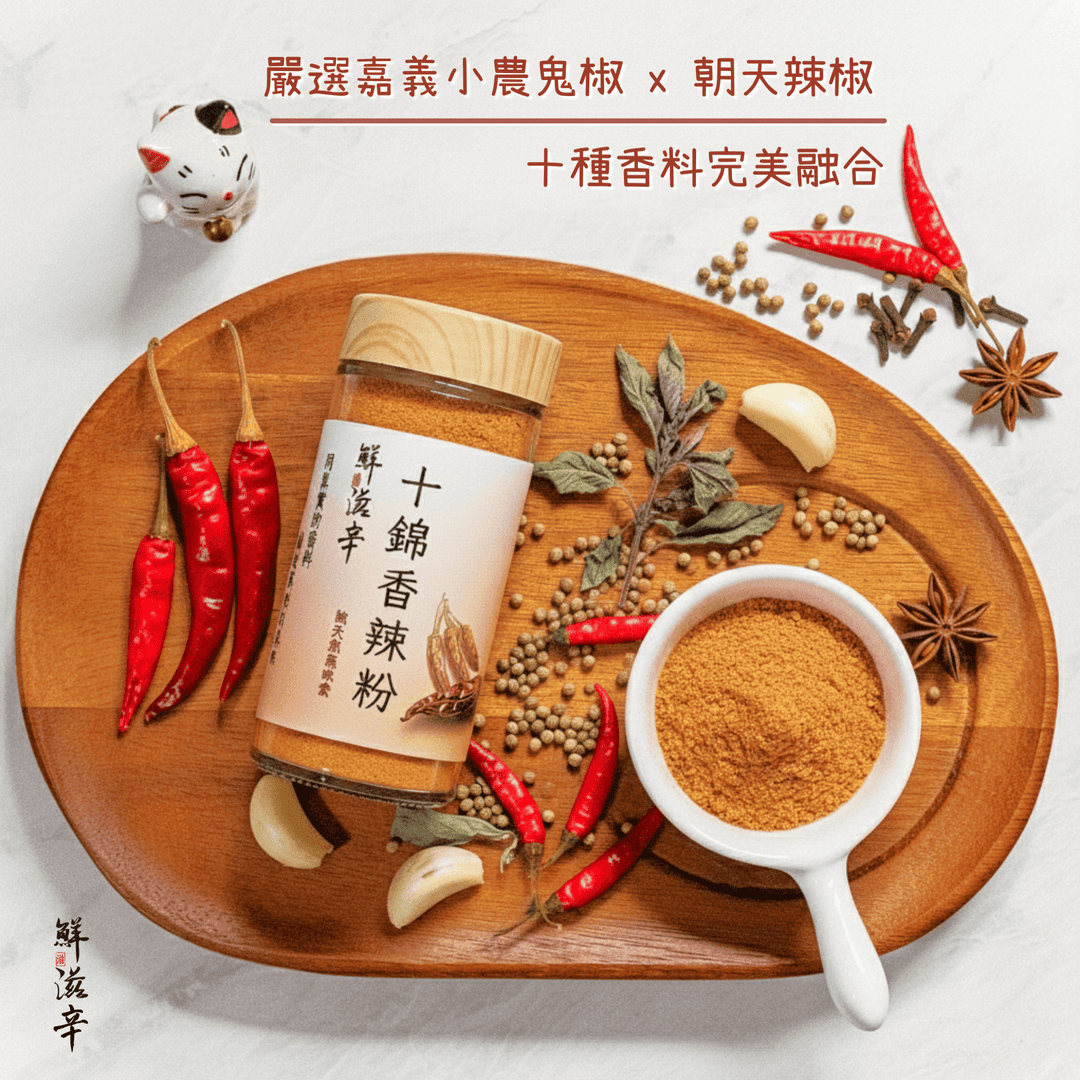 嘉義在地小農栽種印度鬼椒、朝天番椒新鮮乾燥研磨製成獨家精心搭配十種天然辛香料完美結合不只是辣,更是香的迷糊!一撒直接成為下飯神器,吃什麼都涮嘴百搭萬用,不論是燒烤、炸物、滷味、泡麵、輕食、料理愛吃辣的朋友一定別錯過!溫馨提醒 辣度:★★★☆☆ 三顆星 中辣