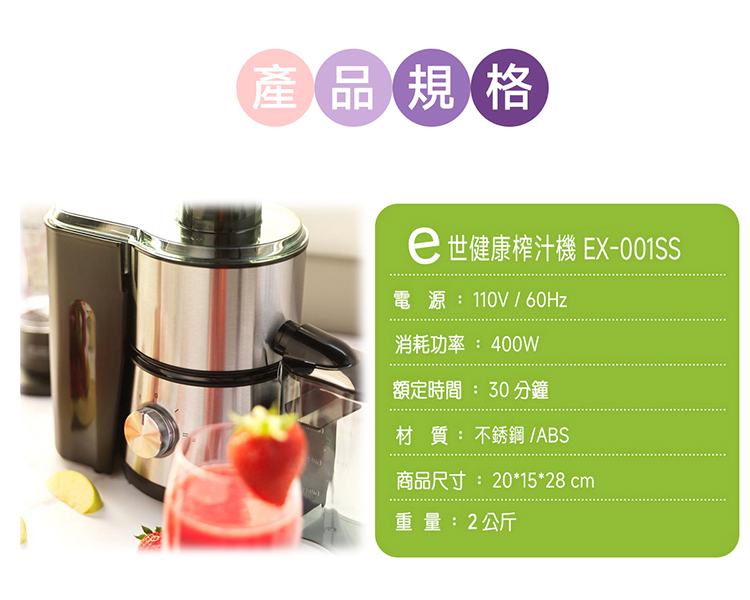 【鳳梨牌】e世健康榨汁機EX-001SS