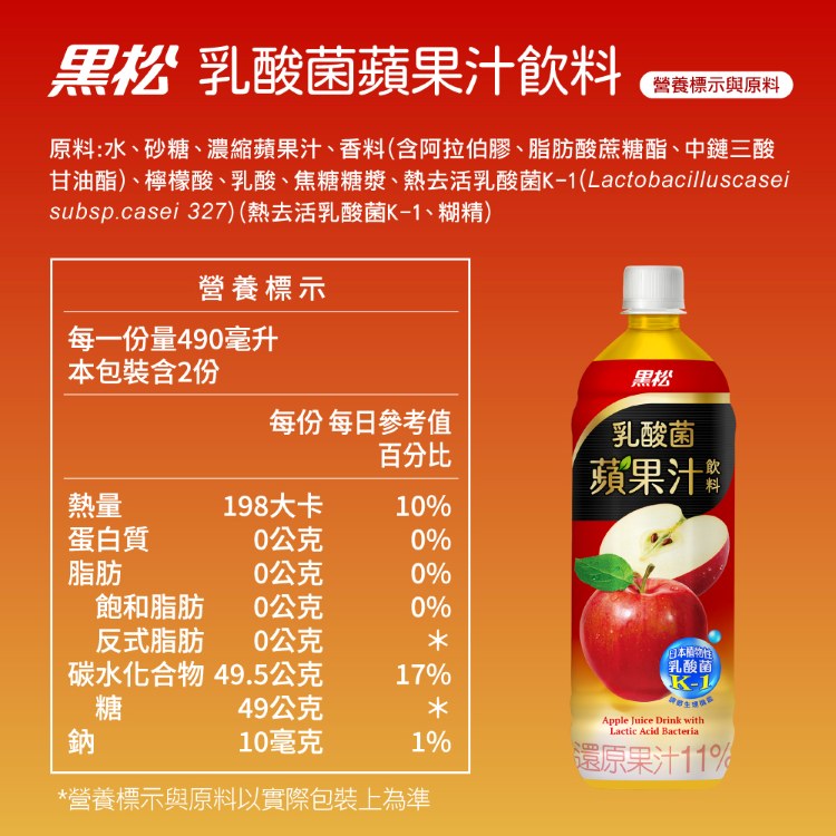 黑松乳酸菌蘋果汁飲料 980ml