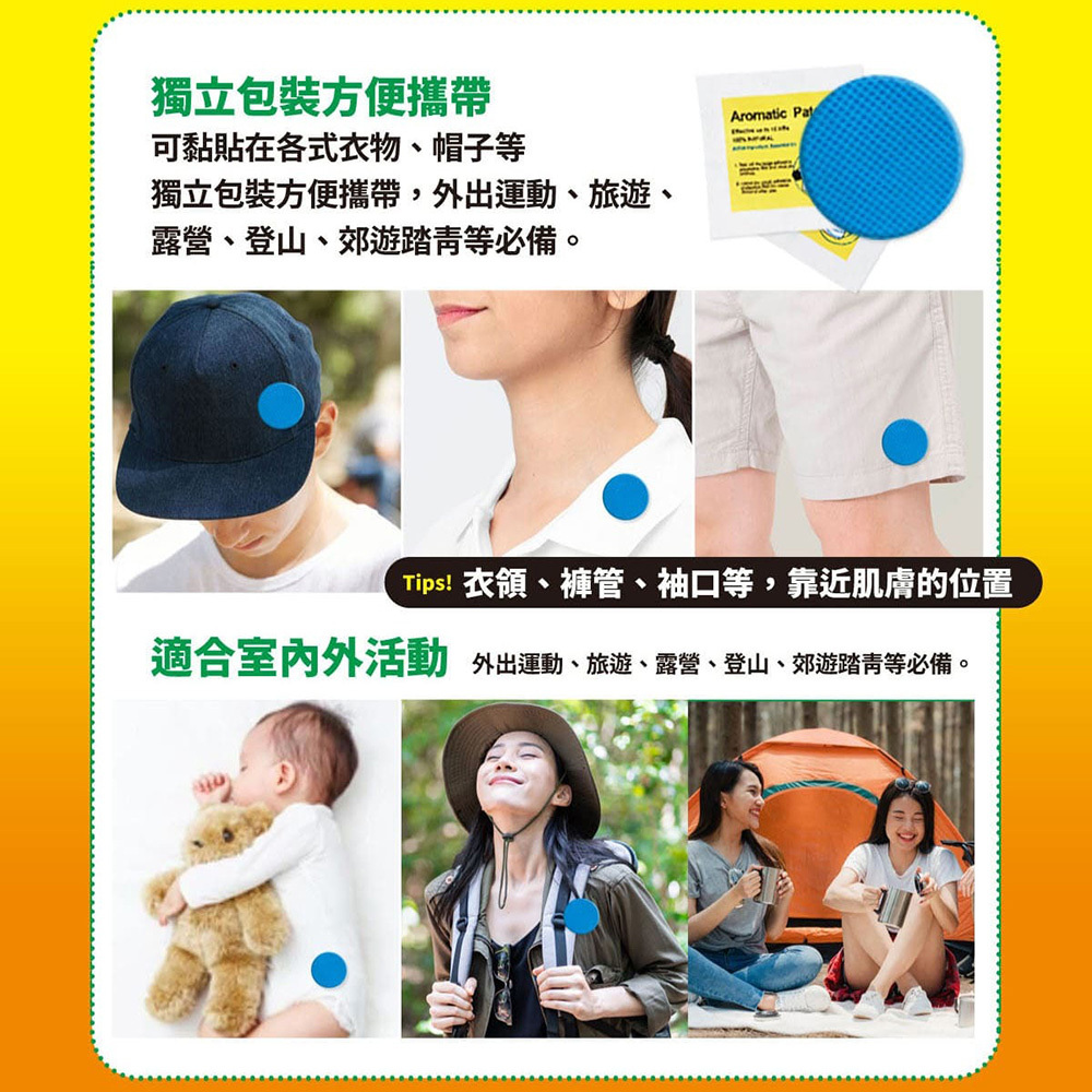 ◆孕婦及幼童適用◆貼在衣物或背包上◆歐洲頂尖萃取技術◆多項SGS檢驗合格◆採用歐洲進口天然驅蚊成份PMD,不含化學成份DEET規格:直徑4cm主要成分:檸檬尤加利精油(OLE) / 檸檬桉醇(PMD)台灣生產製造