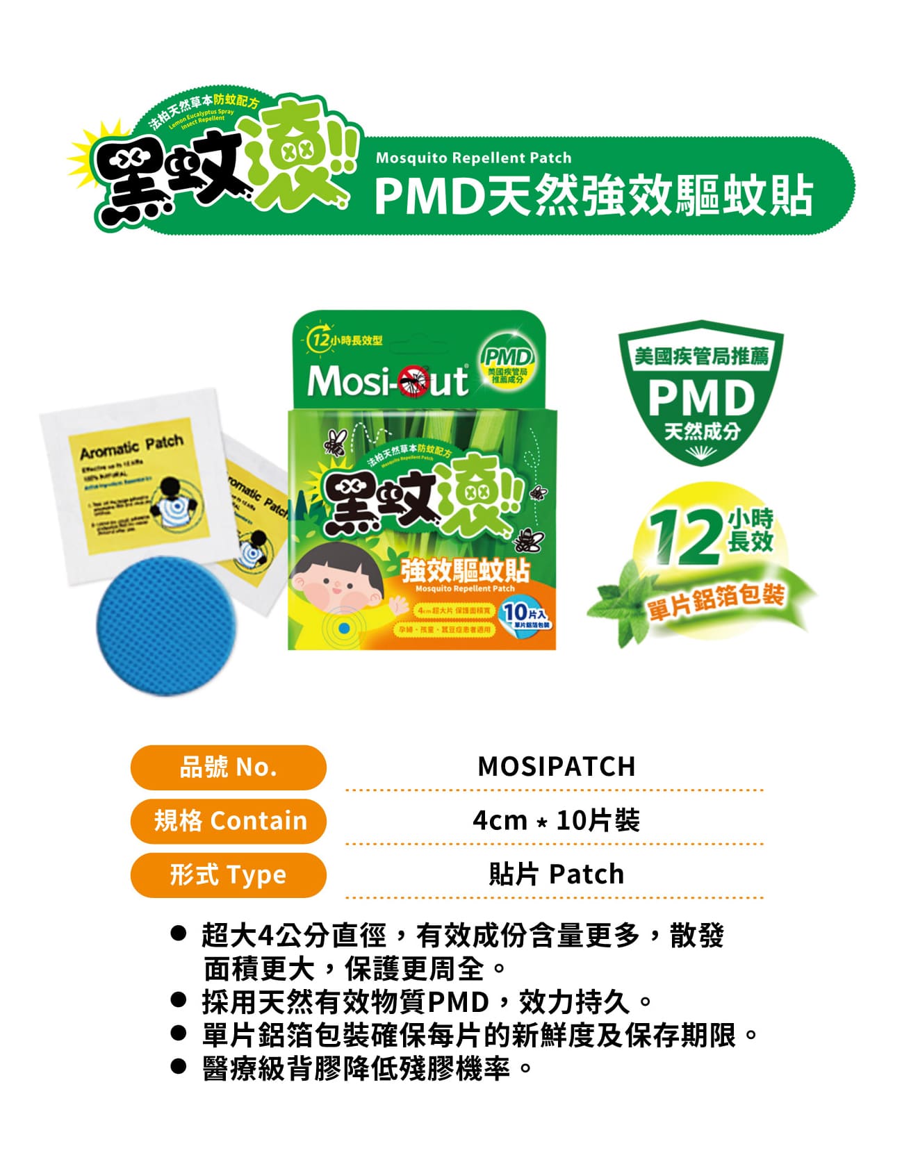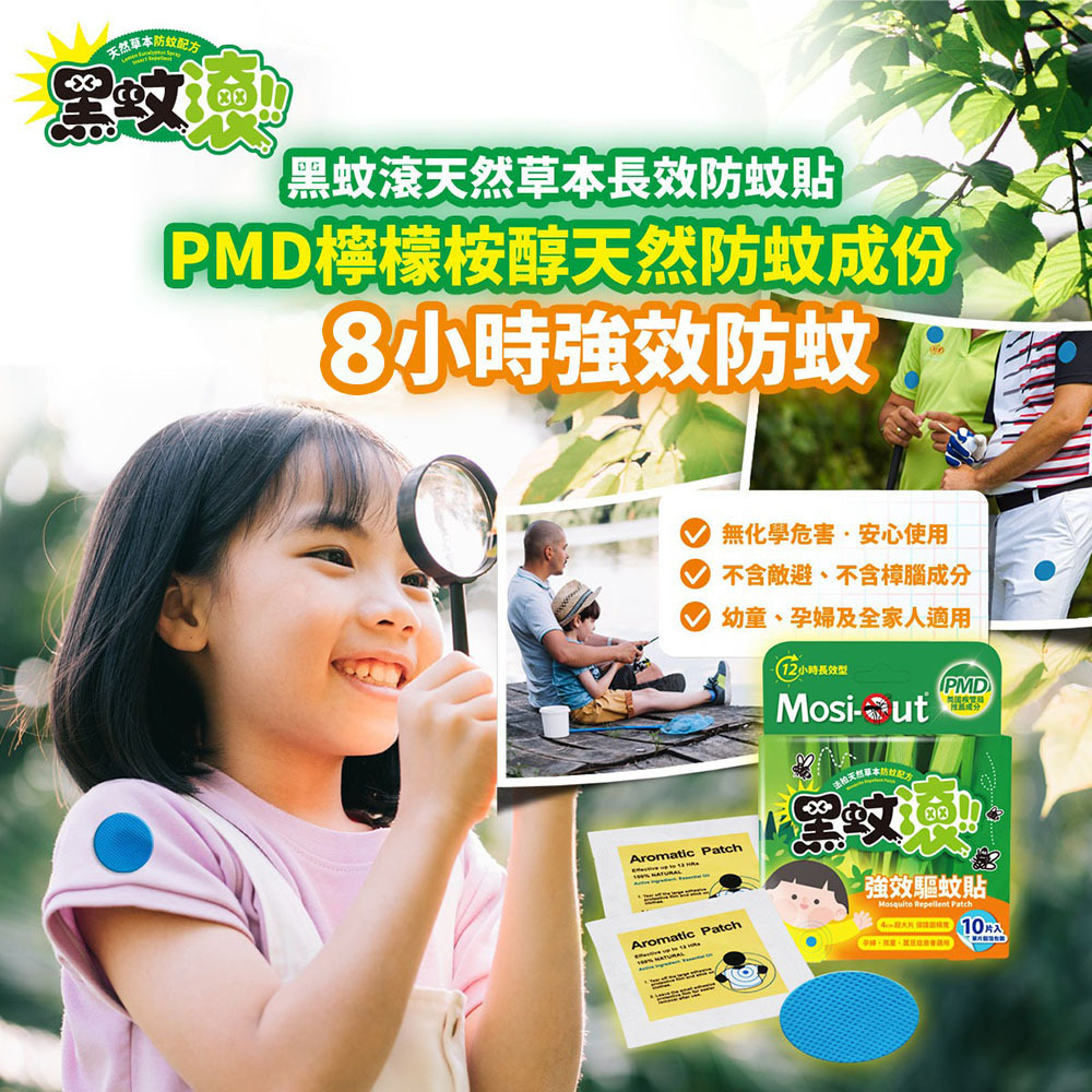 [佑全保健藥妝]Mosi-Out黑蚊滾天然PMD草本長效驅蚊貼10片/盒