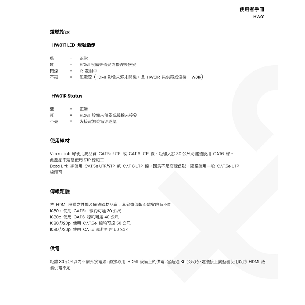 -可透過兩條CAT5e (或更高)網路線傳輸訊號,最遠距離達60公尺。