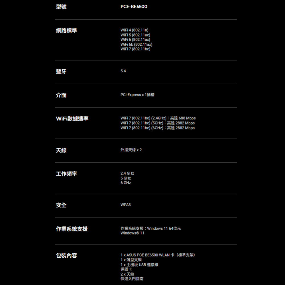 昌運監視器 ASUS華碩 PCE-BE6500 WiFi 7 PCI-E 無線網卡
