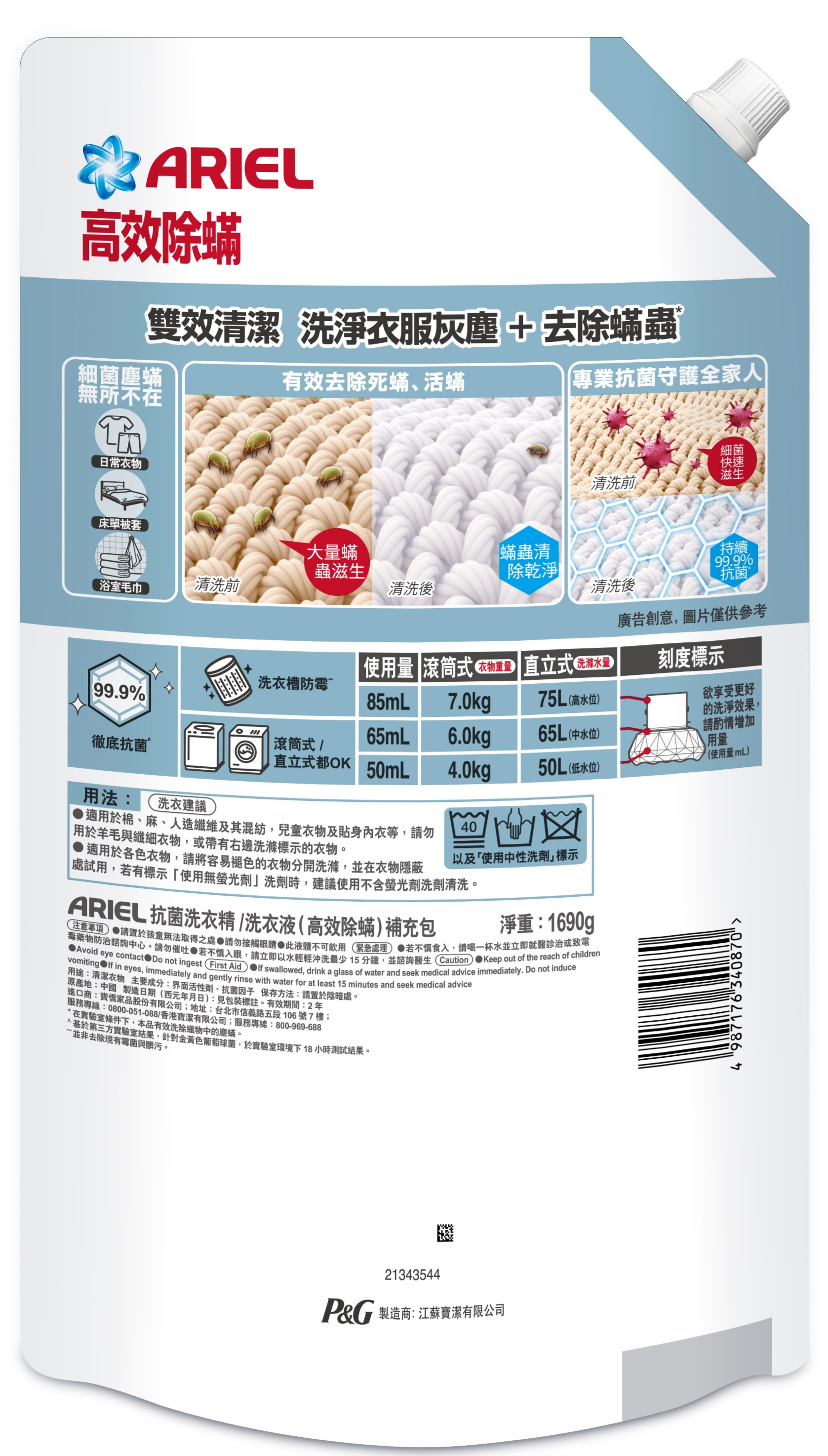 ARIEL抗菌洗衣精1690g袋裝-高效除