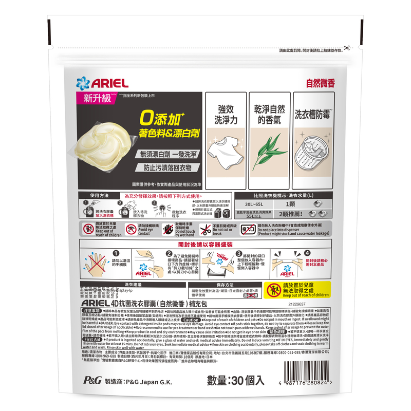 ARIEL 洗衣膠囊30顆袋裝-自然微香