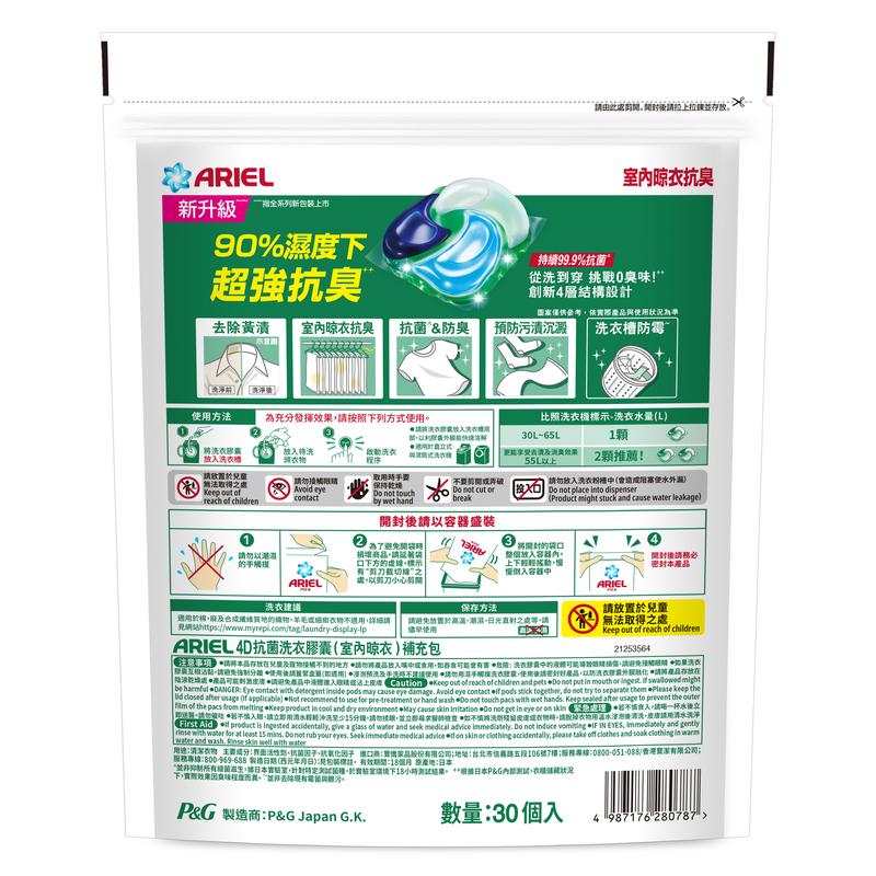 ARIEL 洗衣膠囊30顆袋裝-室內晾衣(10/24 08:00 -10/26 23:59 3件$520活動, 請下3件, 數量有限售完為止)