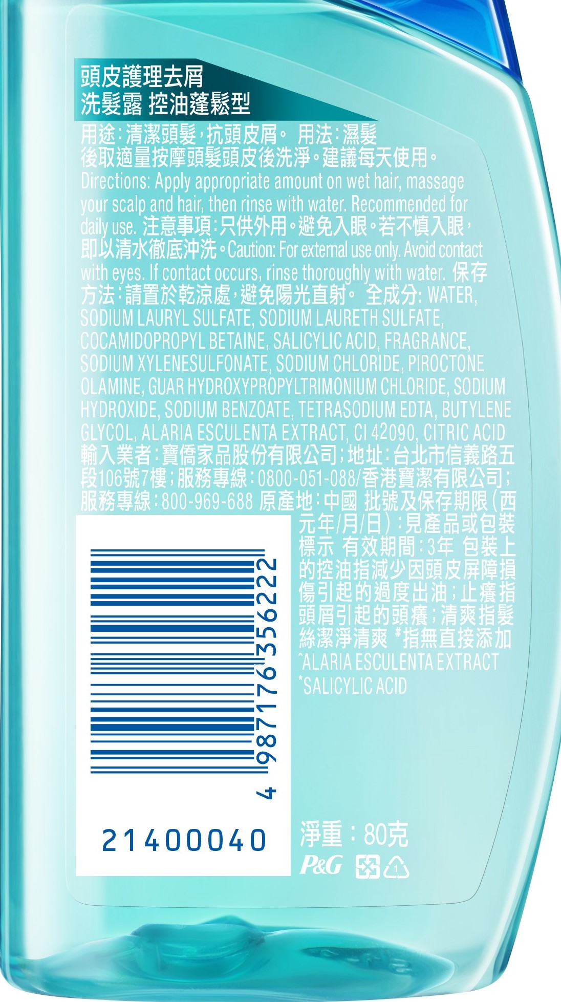 海倫仙度絲頭皮護理去屑洗髮露-控油蓬鬆80g