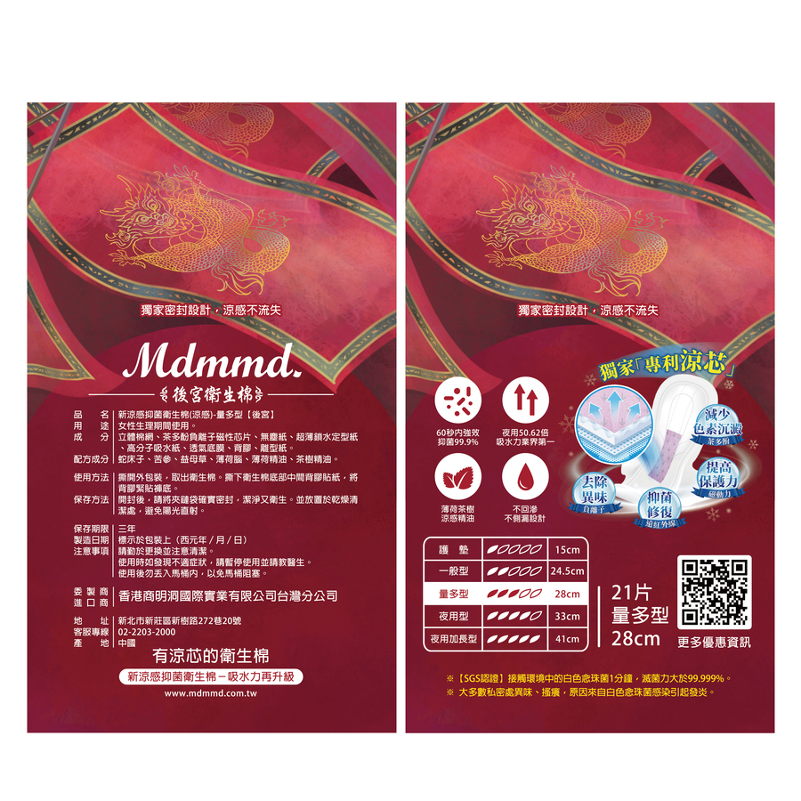 [箱購]Mdmmd.新涼感抑菌衛生棉量多型量販組7PC片 x 3 x 6PC包