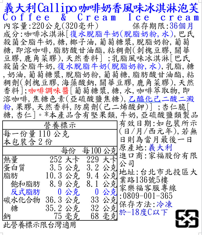 義大利Callipo咖啡奶香風味冰淇淋泡芙